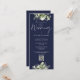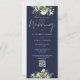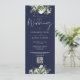 Um convite de casamento floral verde com tipografia elegante de escrita de caligrafia e o seu website de casamento Código QR num fundo azul marinho. Projetado por Thisnotme©