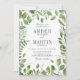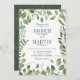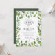 Este belo convite apresenta folhagem verde e detalhes do seu casamento escritos em uma bela fonte. Perfeito para um tema de casamento de primavera. Altere o tamanho, estilo e cor da fonte clicando no botão 'Personalizar'. Reformule o convite para o casamento para ajustado do seu estilo pessoal. Itens correspondentes estão disponíveis.