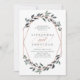 Esta moda e elegante convite de casamento apresenta uma forma geométrica falsa rosa de ouro cercada por belos galhos verdes.