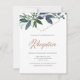 Este convite de recepção de casamento elegante e moderno apresenta uma forma geométrica em rosa dourado falso rodeada por belos ramos de folhagem, com tipografia em rosa dourado falso estilosa.