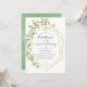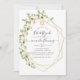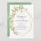 O sábio verde e a aquarela branca deixa o convite para morcego mitzvah com estrutura geométrica dourada e tipografia elegante para escrita manual.