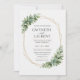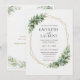 "Elegant greenery and gold geometric wedding invitation featuring botanical leaves, gold geometric frame, and rustic style. Perfect for garden weddings, outdoor ceremonies, and nature-inspired celebrations. Fully customizable with your names, date, and venue details."