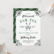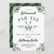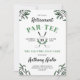 Um convite de festas de golfe temido em branco e verde com verde e bola de golfe e tacos de golfe cruzados.