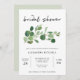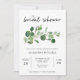 Estes convites de chá de panela modernos e minimalistas apresentam as tendas folhas verdes de aquarela e a elegante tipografia.