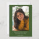 Celebre a vida de seu amado com um belo e sincero convite ao funeral com folhas verdes impressionantes e um sólido fundo verde. Personalize o convite com uma foto estimada para criar um tributo pessoal e significativo. Este elegante design dá o tom de um encontro memorável onde amigos e familiares podem se reunir para honrar e lembrar os que partiram. Escolha este convite para transmitir o calor, o amor e um tributo adequado a uma vida bem vivida.