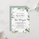 Este convite de morcego mitzvah para uma caligrafia moderna tropical verde é perfeito para um simples morcego mitzvah. A design apresenta folhas tropicais predominantemente verdes com um toque de flores rosadas.