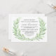 Um convite de casamento contemporâneo com uma adorável cor d'água laurel era verde em matizes delicados. O verde floral é uma escolha versátil que coordena com qualquer esquema de cor que você planeja para seu dia especial. Insira os detalhes do casamento no lugar do texto de amostra mostrado.