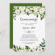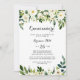 Este convite floral verde de outono para a Quinceañera é perfeito para uma festa de aniversário rústica de 15. O design apresenta elegantes pedras brancas de aquarela com folhagem verde.