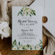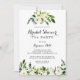 Este convite de festas verde branco de chá de chá de panela floral é perfeito para um chá de casamento rústico. O design apresenta elegantes pedras brancas de aquarela com folhagem verde.
