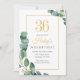 Convites Greenery Wreath Chic Dourado e Sage 36º Aniversári