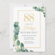Convites Greenery Wreath Chic Dourado e Sage 88º aniversári