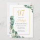 Convites Greenery Wreath Chic Dourado e Sage 97º Aniversári