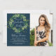 Greenery Wreath Dourado Marinho Azul 2 Convite para Graduação de Fotos