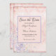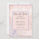 Um belo chique de vidro para salvar o cartão de casamento. Rosa com a inscrição das cinzas escuras. Adicione seus detalhes e os nomes da noiva e do noivo.