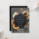 Rich, autumnal blooms in shades of muted gold, deep charcoal, and soft ivory create a sophisticated, romantic atmosphere. This design evokes a sense of cozy elegance, perfect for a fall celebration. The botanical arrangement features a mix of layered petals and wispy foliage.