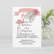 Convites Grinalda floral delicada, flamingos rosa,