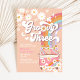Convites Groovy 3rd Pink Daisy Rainbow Hippie Aniversário