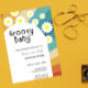 Groovy Baby Retro inspirou o convite para o chá de fraldas com margaridas de estilo 70 e fontes e cores de som.