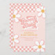Convites Groovy Baby Retro Xadrez Rosa Margarida