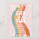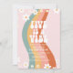 Retro inspirou Cinco é um convite de aniversário de 5 Vibe Groovy com estilo hippie arco-íris, margarida e fontes e cores boho.