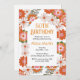 Flor hippie colorido e folhas retro colorido, num pano de fundo branco. Fácil personalização para detalhes de nome, idade e evento para atender às suas necessidades.