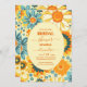 Convites Groovy moderna margarida floral amarela e rosa Bri