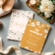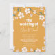 Traga vibrações retrógradas para o seu grande dia com este convite de casamento floral. Apresentando um fundo de mostarda ousado, flores brancas brincalhonas e tipografia divertida, esta design combina perfeitamente a nostalgia dos anos 70 com uma moderna reviravolta do boho. Ideal para casais que querem uma estética de casamento divertida, na moda e única, quer você esteja planejando uma festa de jardim de verão ou uma celebração de feto rústica. Personalize com seus detalhes para espalhar o amor em estilo de groovy verdadeiro.