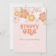 Retro inspirou Groovy Um primeiro convite de aniversário com flores do estilo 70 e fontes e cores boho.