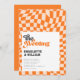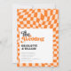 Groovy Orange Checkered Modern Retro Casamento Convite