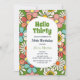 Convites Groovy Retro Hippie Flower Hello 30 Aniversário