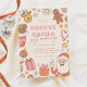 Convide amigos e família para uma troca de presentes de Papais noeis Secretos nesta temporada de festas! Este design retro apresenta um quadro de elementos de Natal ranchosos, incluindo um ornamento de bola de disco, presentes, cana-de-açúcar, estrelas, faíscas, flores, pães-de-gengiva, um estoque, um símbolo de paz de renas e papais noeis posando com um sinal de paz! "Papais noeis secretos" está na tipografia groovy, com "troca de presentes" escrita em letras modernas. O esquema de cores é uma combinação de creme retrorreflector, rosa, marrom e laranja. Feita para combinar a nossa coleção de "Colagem de Natal Moderna e Papais noeis Secretos de Groovy". Cartões invertem para um padrão dos elementos de natal ranhosos. Veja a coleção ligada nesta página para coordenar itens ou procure na nossa loja mais convites de festas de Natal.