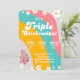 Convite de aniversário triplo para Groovy, Convite de aniversário conjunto para Daisy, Irmãos para Groovy Convidam Irmãs Retro Triplet Convites Coloridos