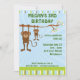 Este convite de festas apresenta dois macacos bonitos pendurados em um galho de árvore.