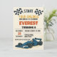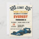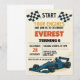 Comece seus motores! Celebre o grande dia do seu filho em alta velocidade com este excitante Convite de Aniversário Race Cars, desenhado para rapazes que adoram velocidade, carros e competição. Apresentando carros de corrida ousados, padrões de bandeira checados e cores vibrantes, vermelhas e azuis, este convite captura a emoção de uma celebração de dia de corrida.