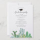 Convite de festas de Festa de formatura botânica Cactos 2024 com suculentes de aquarelas e tipografia moderna. Altere completamente o layout, as fontes e o plano de fundo clicando no botão "Personalizar" e crie sua própria festa de formatura exclusiva convidando seu convidado a salvar como uma manutenção