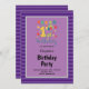 Este "Convite de festas de primeiro aniversario Enquadrado com Stripes Roxas" apresenta um quadro listrado roxo com um gráfico agradável. Prepare-se para aproveitar uma ocasião memorável, faça o pedido hoje!