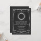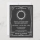 Um convite por na moda para o eclipse solar total de 8 de abril de 2024. Em um design de estilo de cartão de tarô de tendência com a placa chamada "O Eclipse" e a data em algarismos romanos. Apresentando um gráfico místico do eclipse em uma cor de fundo preto suave. Edite as modelos de texto para o seu próprio convite de festas de visualização personalizado. Disponível como convites impressos ou como um download instantâneo para enviar em seu telefone.