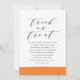 Defina o tom para sua celebração com estes convites para festas de Dia das Bruxas e na moda. Apresentando uma elegante tipografia de guiões sobre braçadeiras de cor laranja, esta design moderna é perfeita para encontros de Halloween em escala superior ou moderna. Personalize com os detalhes do seu partido na frente e desfrute do padrão de distribuição em preto e branco coordenado na parte de trás para um acabamento polido.