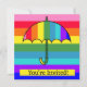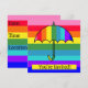 Convite de cartão de nota de guarda-chuva de listras de arco-íris fofo. Adicione as informações do evento / festa no verso do cartão. Bom para aniversários, eventos do Dia do Orgulho e mais.