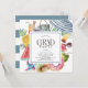 Este convite de formatura/festa de formatura apresenta um fundo branco com um guarda-sol de praia, chinelos, bebida/coquetel tropical em jarro de alvenaria, picolé, melancia, donut, abacaxi, chapéu de palha, bebida de coco fresca, roda-gigante e óculos de sol. O verso apresenta um fundo branco com listras rosa. Perfeito para uma festa de formatura de verão na praia ou ao lado da piscina! Personalize-o para suas necessidades. Você pode encontrar mais produtos correspondentes na minha loja.