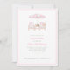Este convite de festas de coquetel do lado do polo apresenta um guarda-chuva do lado do polo, cor-de-rosa e branco, no meio de duas cadeiras de salão. Todos os detalhes do podem ser editados para atender às necessidades do seu evento. Na parte de trás está uma fila de piscinas com guarda-chuvas tortas cor-de-rosa e branca, colocadas perto de uma piscina de natação.
