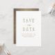 Salve o Convite Dourado de Data Branca. design de tipografia moderna elegante. Texto antigo colorido em branco, com o verso apresentando um impressão original de abstrato de ouro moderno de mídia mista. Personalize com seu próprio texto. Uma bela salvação da data design excelente para casamentos, noivados, aniversários e outras ocasiões especiais.
