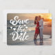 O anúncio do seu casamento. Use a imagem horizontal do seu cheio com "Salvar a Data" sobreposta à foto. Gradiente escuro opcional para o script branco se destacar se seu plano de fundo é muito claro. Apenas remova o gradiente se você não precisar dele. A cor de fundo é personalizável.