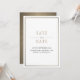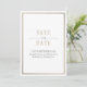 Salve o Convite Dourado de Bronze Branco de Data. Elegante design de tipografia moderna. Texto antigo colorido de ouro e carvão em branco com borda fina de ouro e impresso com uma mídia original antiga de ouro, trabalho de arte de abstrato de impressão. Personalize com seu próprio texto. Uma bela salvação da data design excelente para casamentos, noivados, aniversários e outras ocasiões especiais. Visite nossa loja, Austen & Grace, para ver a suíte de casamento de cheios, produtos correspondentes e muito mais, e entre em contato conosco se precisar de assistência contact@austenandgrace.com