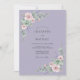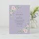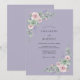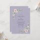 Um fundo suave de lavanda emoldura flores delicadas em aquarela em rosa desbotado e verde suave. Acentos de ramalhetes de lavanda e suculentas criam um ambiente arejado e romântico, perfeito para uma ocasião encantadora. Este design evoca uma elegância suave e natural.