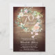 Com uma delicada guirlanda floral em aquarela sobre um fundo de painéis de madeira rústicos, este convite de aniversário de 70 anos botânico chic pode ser personalizado com as informações especiais do aniversariante. O verso apresenta uma guirlanda floral correspondente emoldurando seu monograma em texto branco elegante sobre um fundo dourado. Desenhado por Thisisnotme