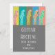 Um cartão de convite adequado para um concerto de violão ou guitarra Considerando com uma imagem pastel moderna de ilustrações de arte de guitarra com texto personalizável. Este convite para o recital de guitarra poderia ser usado por professores de guitarra para concertos para estudantes ou para pais de jovens músicos para convidar seus amigos e famílias para uma apresentação. Estes cartões podem também ser utilizados numa qualidade profissional de concerto, com detalhes musicais do desempenho incluído no verso do cartão.
