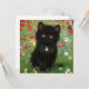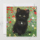 Cartão com um gatinho Gustav Klimt! Este gatinho preto veste um colar prateado e se senta num campo de flores vermelhas, azuis, brancas e amarelas. Um presente maravilhoso para amantes de gatos e entusiastas de arte austríacos!