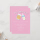 Há um bebê preparando convites de banho de canecas de cerveja cor-de-rosa.