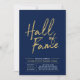 Celebre seu dia especial com este convite de festa simples e elegante. Este design apresenta um "Hall da Fama" em letra cursiva chic com um layout limpo na combinação de cores azul-marinho e dourado. Mais designs e suprimentos para festas estão disponíveis na minha loja BaraBomDesign.